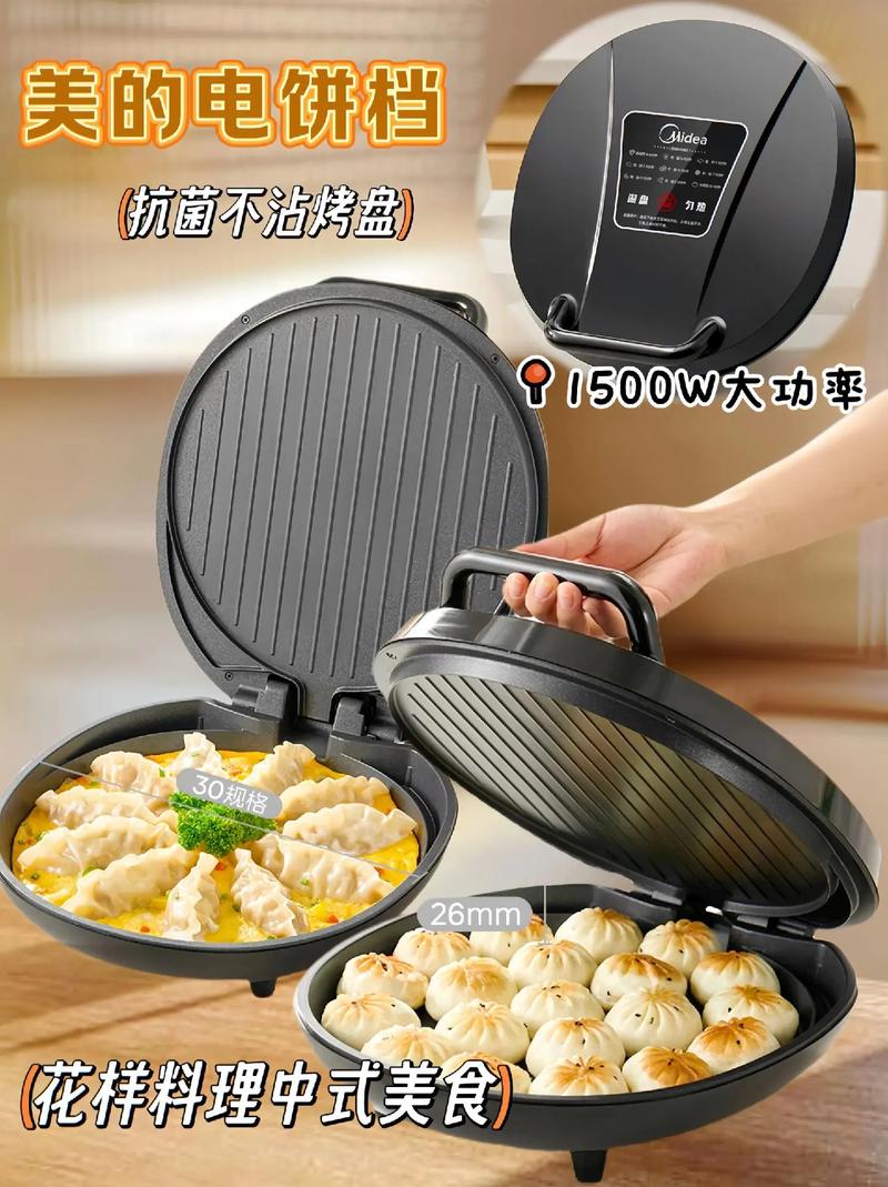 开合方式:新式电饼铛支持90度或180度侧开式,既可悬浮双面煎烤,也能单面使用,更加灵活节能。烤盘深度:烙大饼时,烤盘深度越深越好,其他情况下则无需过分追求深度。温控稳定性:独立温控开关:选取具有独立上下温控开关的电饼铛,能确保不同食材的独立或同时加热,满足多样化烹饪需求,同时节约能源。