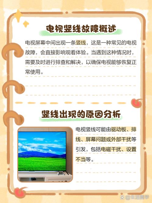 〖Two〗、屏幕故障 液晶面板损坏:液晶屏幕内部的像素或线路可能出现损坏,导致在开机时屏幕中间出现一条竖线。这种情况通常是由于物理损伤或长期使用中的自然老化所致。信号传输问题 信号线松动或损坏:连接液晶电视的信号线(如HDMI、AV线等)可能松动或损坏,导致信号传输不完整,从而在屏幕上出现竖线。