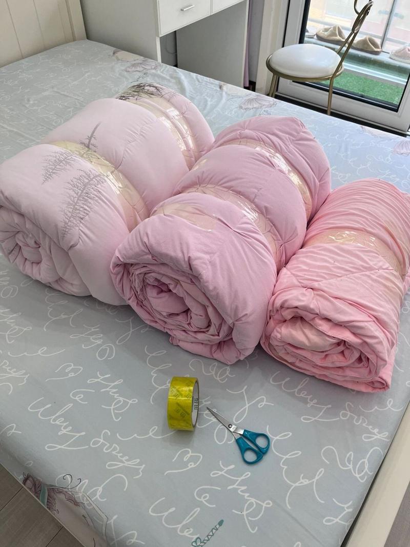 晾晒时避免钩挂:在存放前,应将棉花被晾晒在阳光下,以去除上面的螨虫和灰尘,保持干净。晾晒时注意防止棉被钩挂,以免造成纤维损伤。第二天需翻面晾晒:为了确保棉被两面都能充分晾晒,第二天需要继续晾晒,并将棉被翻过来晾晒另一面。