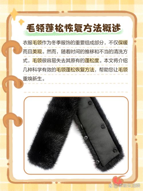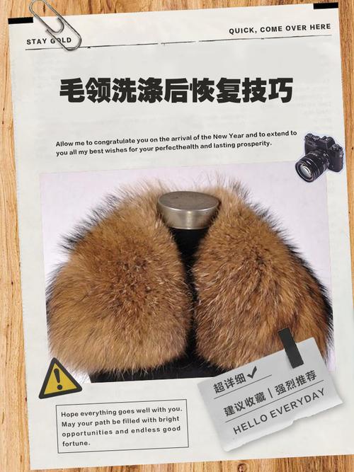 〖Five〗、如果以上方法无法完全恢复,可以先用清水将毛领稍微打湿,注意不要过度湿润。然后使用吹风机对毛领进行加热,边吹边将缠在一起的毛分开,并顺着毛的方向吹,使其恢复自然状态。注意事项: 为了避免毛领洗完变一坨,清洗时不要机洗,也不要大力揉或搓。