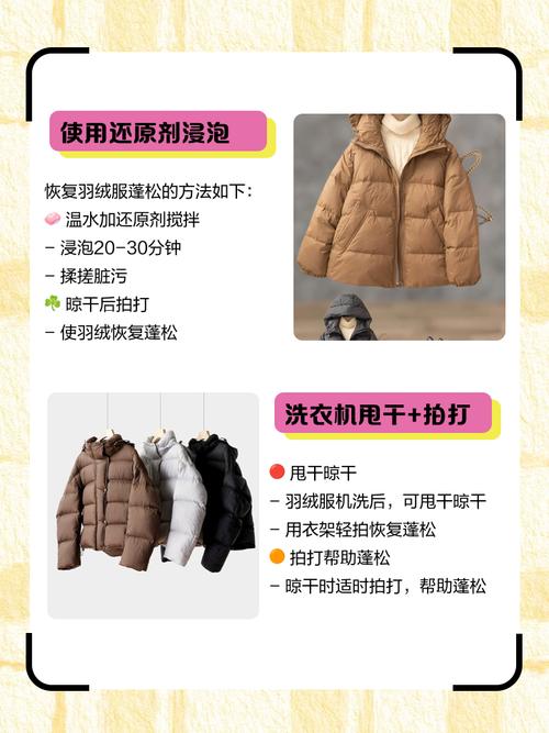 羽绒服洗成坨是可以恢复的。以下是一些具体的恢复方法和注意事项:洗涤方法 干洗或手洗:为了避免羽绒服洗成一坨,建议采用干洗或手洗的方式。干洗能够保持羽绒的蓬松度和保暖性,而手洗则可以更加细致地处理羽绒服的各个部位。避免机洗:使用洗衣机甩干羽绒服时,由于离心力的作用,羽绒容易聚集在一起形成团块。
