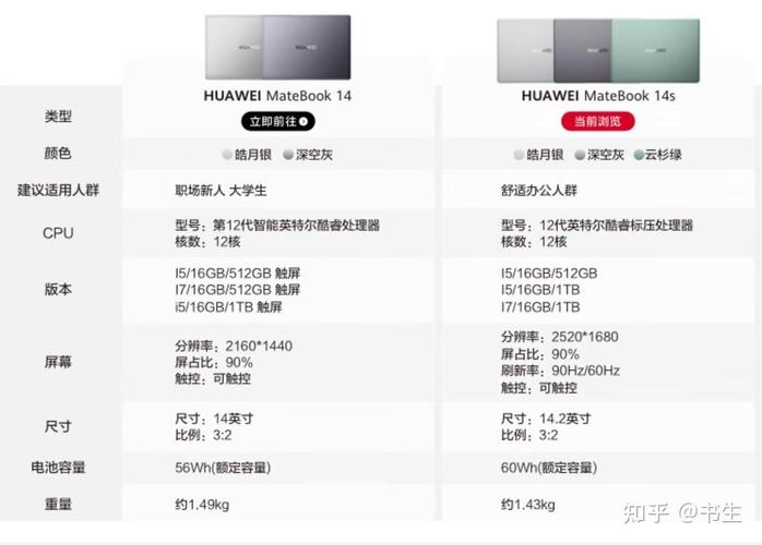 处理器 华为MateBook 14:搭载的是11代酷睿i5 1135G7低压处理器。 华为MateBook 14s:搭载的是性能更强的11代酷睿i5 11300H标压处理器。 内存 华为MateBook 14:使用DDR4 3200MHz类型的内存。 华为MateBook 14s:则采用LPDDR4X3733MHz类型的内存,不仅速度更快,而且功耗更低。