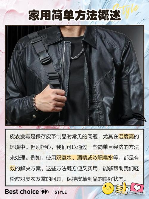 使用肥皂清洗 步骤:在发霉的地方先用肥皂轻轻擦拭,然后用湿布擦拭干净。注意动作要轻柔,避免损伤皮质。 使用酒精擦拭 步骤:在毛巾上倒一点酒精,然后用毛巾擦拭皮衣发霉的部位。酒精可以有效去除霉斑,同时不会对皮质造成太大损害。 预防措施 保养油涂抹:如果皮衣长时间不穿,可以在皮衣上擦上保养油。