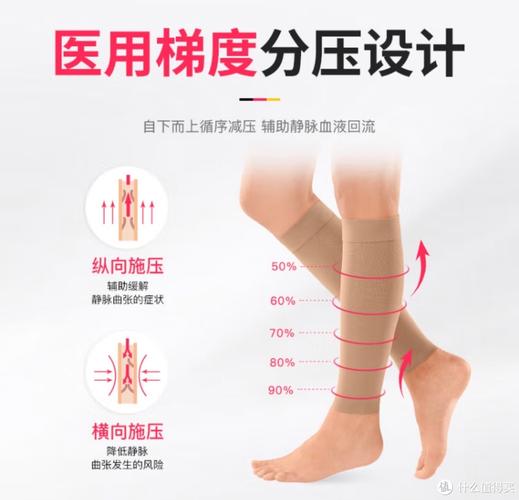 〖Two〗、静脉曲张病人应穿戴医用弹力袜。以下是对医用弹力袜的详细介绍: 医用弹力袜的特点 医用弹力袜利用分级压力梯度设计,即袜子的每个部位压力不同。这种设计符合人体生理结构,从脚踝到大腿,弹力袜的压力逐渐减低。这种压力梯度有助于降低曲张静脉内血管的血液淤滞现象,减少静脉压力,从而缓解病人的症状。