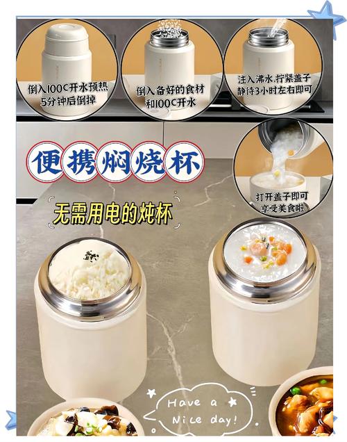 避免婴幼儿食用:婴幼儿的消化系统还没有完全发育完成,因此比较好不要吃用焖烧杯做出来的食品。这是因为婴幼儿的消化系统对食物的熟度和营养要求更高,而焖烧杯可能无法完全满足这些要求。焖烧杯的优点 方便携带:焖烧杯通常体积小巧,方便携带,适合在户外、办公室或旅行中使用。