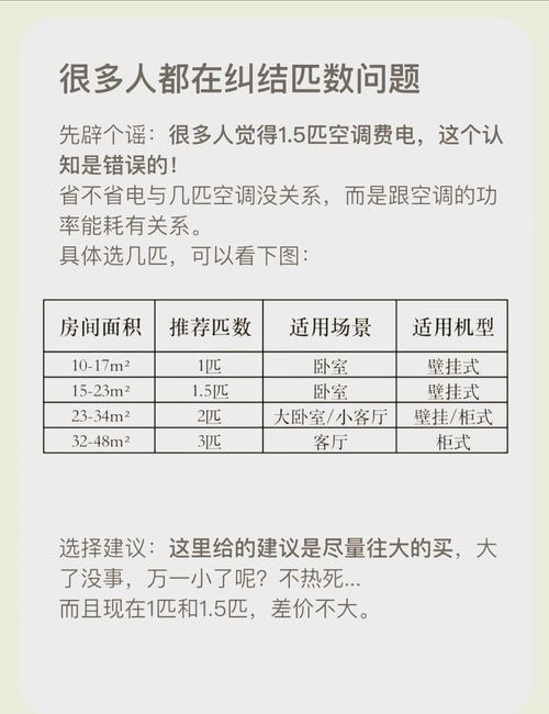 综上所述,虽然空调匹数越大确实越费电,但在选取空调时还需综合考虑房间大小、使用频率以及空调的能效等级等因素,以达到既舒适又节能的效果。
