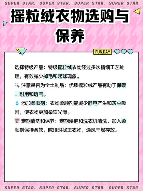 〖Two〗、摇粒绒确实容易粘灰尘。这是由于其特殊结构和材质增加了与灰尘接触的表面积,从而更容易吸附灰尘。针对摇粒绒粘灰的问题,可以采取以下措施:日常擦拭:每天使用半潮毛巾轻轻擦拭摇粒绒衣物表面,以去除表面的灰尘。
