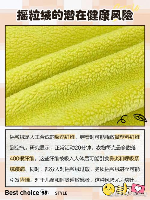 〖Four〗、摇粒绒不建议穿的原因主要有易沾灰、可能引起过敏反应、费用较高、易产生静电以及久穿可能起球。摇粒绒的绒毛颗粒较大,容易吸附灰尘和毛发,这不仅对呼吸道敏感的人不太友好,而且需要定期清洗和保养,否则会影响使用效果和寿命。