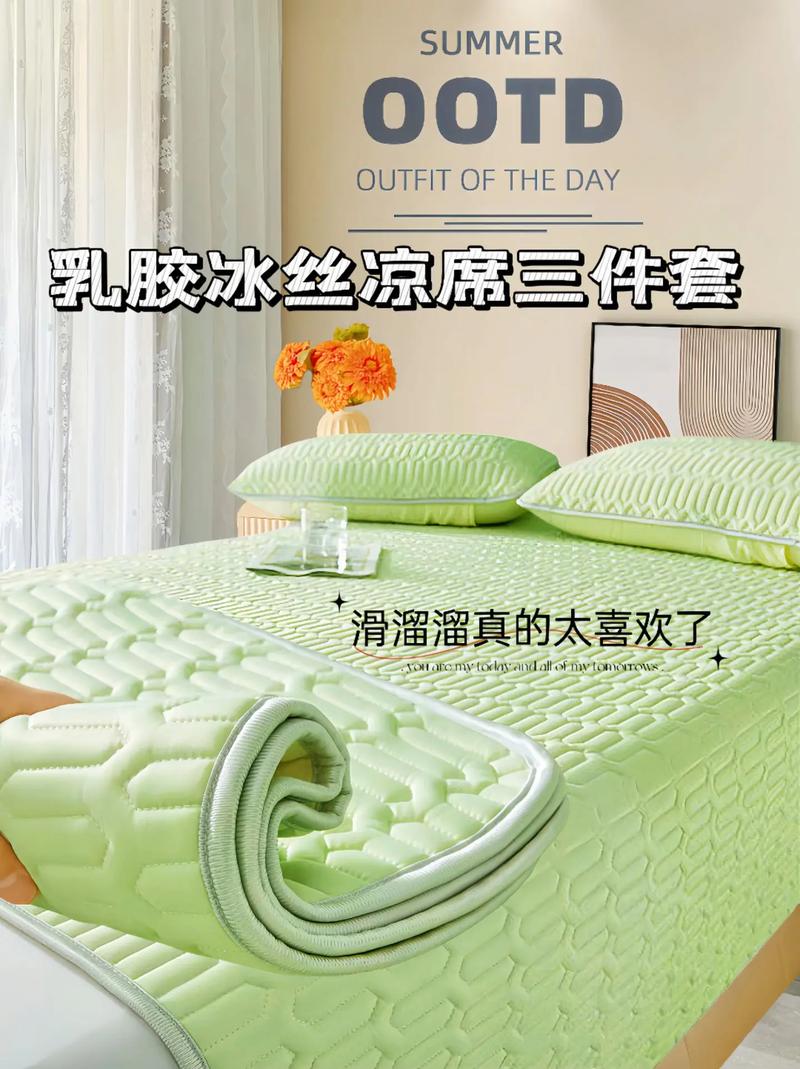 〖Five〗、乳胶凉席的好处主要有以下几点:亲肤透气,凉感适中:乳胶凉席采用天然乳胶为原料,具有优秀的透气性和适中的凉感,使用起来非常舒适。抑菌除螨:与常用的竹席相比,乳胶凉席的缝隙不易暗藏螨虫,且天然乳胶本身具有抑菌效果,有利于保持床品的清洁卫生。