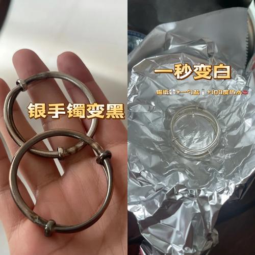〖Four〗、处理银镯子变黑的方法有多种:a. 使用牙膏清洗:将牙膏涂在银镯子上,用软毛牙刷轻轻刷洗。b. 食醋擦拭:用棉布蘸取食醋轻轻擦拭银镯子。c. 可乐浸泡:将银镯子浸入可乐中,稍后用软毛刷清洁。d. 使用擦银布:直接用擦银布和洗银液擦拭银镯子以恢复其光泽。