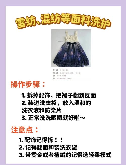 〖One〗、选取中性洗涤剂清洗裙子,并可加入柔顺剂,使衣物洗后更有光泽感。控制浸泡时间:洛丽塔裙子层次多,浸泡时间不宜过长,浸泡后要尽快清洗,以免耗时过长。自然风干:洗完后不要拧干,用手轻轻抓几下,然后挂在通风处自然风干。熨烫与存放:衣物干透后,进行熨烫以防止起褶,然后挂在衣柜里,避免叠放以保持衣物形态。