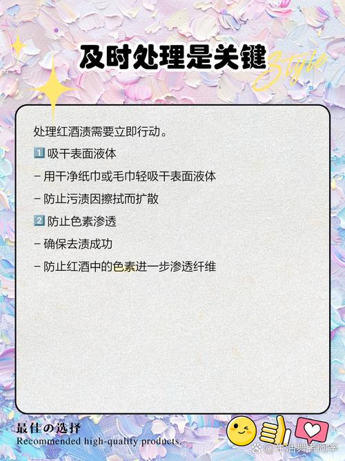 〖Four〗、红酒撒到白衣服上,可以采取以下几种方法清洗:使用盐:步骤:在红酒污渍处撒上盐,用干毛巾轻轻擦拭,然后进行常规的洗涤流程。原理:盐能够吸收红酒中的色素和部分酒精,有助于减轻污渍。使用牙膏:步骤:将牙膏涂抹在红酒污渍区域,等待几分钟让牙膏发挥作用,然后用水冲洗。