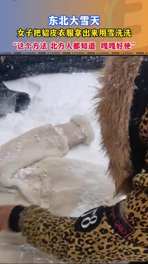 东北地区气候寒冷,皮草大衣成为当地的时尚保暖选取。 当地人用雪洗貂皮大衣是一种传统的清洁方式,不仅限于貂皮,也包括羽绒服。 东北人喜欢穿貂皮大衣,这种衣服因其挡风性能而受到喜欢。 雪地清洗貂皮大衣在东北很常见,对于当地居民来说,这是一种方便快捷的清洁方法。
