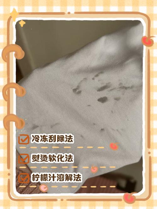 衣服粘上泡泡糖,可以采取以下几种方法进行处理: 使用冰块: 步骤:将一块冰放在泡泡糖上压一会儿,直到泡泡糖变硬。 原理:低温会使泡泡糖失去粘性,从而更容易被去除。 使用汽油或酒精擦洗: 步骤:用适量的汽油或酒精浸湿泡泡糖部位,然后用布轻轻擦洗。