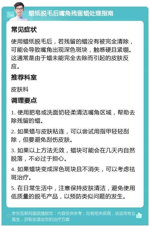 去除脱毛蜡纸残留的方法有以下几种:白纸贴敷法:使用白纸贴在残留蜡质的部位,轻轻按压后撕下,可以有效去除多余的蜡质。专用去蜡湿巾:如果脱毛蜡纸配备了专用的去蜡湿巾,直接使用湿巾擦拭残留蜡质,高效且方便。