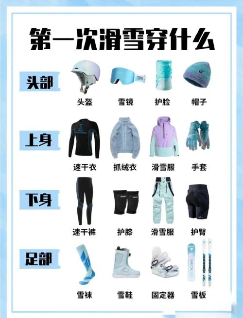 〖Two〗、滑雪需要准备的物品主要包括以下几类:滑雪装备 滑雪板:根据个人滑雪水平和场地要求选取合适的滑雪板。滑雪鞋:与滑雪板相匹配,确保脚部舒适且能牢固地固定在滑雪板上。滑雪杖:帮助滑雪者在滑行过程中保持平衡和方向控制。头盔:必备的安全装备,用于保护头部免受意外伤害。