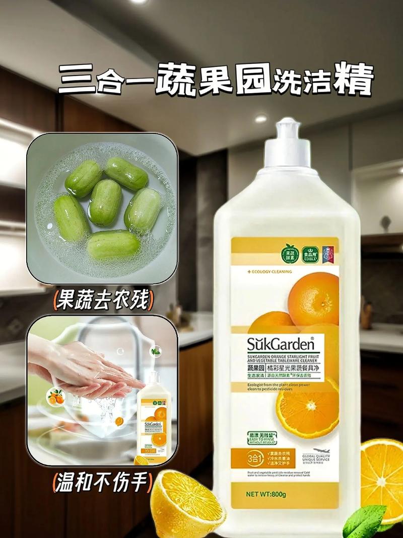 果蔬洗洁精是安全的,但需要注意以下几点:专用性与安全性:果蔬洗洁精是专为清洁蔬果蔬菜研发的,具有清洁功能和去除农药残留的效果。因此,从设计和用途上来看,它是安全的。化学成分与适量使用:尽管果蔬洗洁精是安全的,但它仍然是由化学成分组成的。