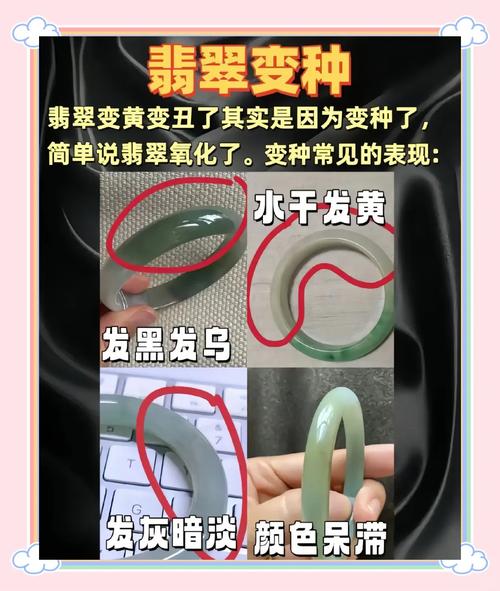 〖Four〗、买翡翠镯子一年了,变得干了,色根明显,拿出来清水泡后戴了两天两夜变得...玉手镯变色的原因:玉手镯中所蕴含的颜色是由玉石体内的微量矿物质元素决定的,所含元素数量不同,玉的颜色也不同。二.翡翠跑水当然啦,除了变种会引发翡翠变脸之外,“跑水”也会让翡翠手镯变干、变丑。