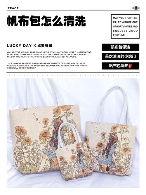 帆布包一般可以通过以下几种方法进行清洗:水+洗衣粉清洗:适用情况:帆布包不是特别脏时。步骤:将帆布包用干净的水浸泡,然后添加适量的洗衣粉进行揉搓清洁。柠檬汁清洗:适用情况:白色帆布包泛黄时。步骤:在洗涤前加入柠檬汁并浸泡一会儿,再进行清洗,可以有效去除泛黄。