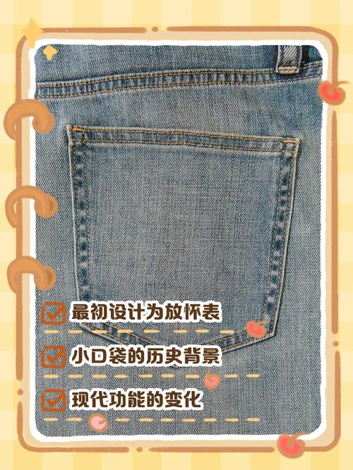 〖Six〗、牛仔裤右口袋袋口上边的小口袋原本是设计用来放置手表的,即“表袋”,但现在已更多用作放置小玩意儿或硬币等物品。以下是关于这个小口袋的详细用途说明:原始用途:放置手表。这个小口袋最初是借鉴于男士西装裤上的表袋设计,用于放置手表。