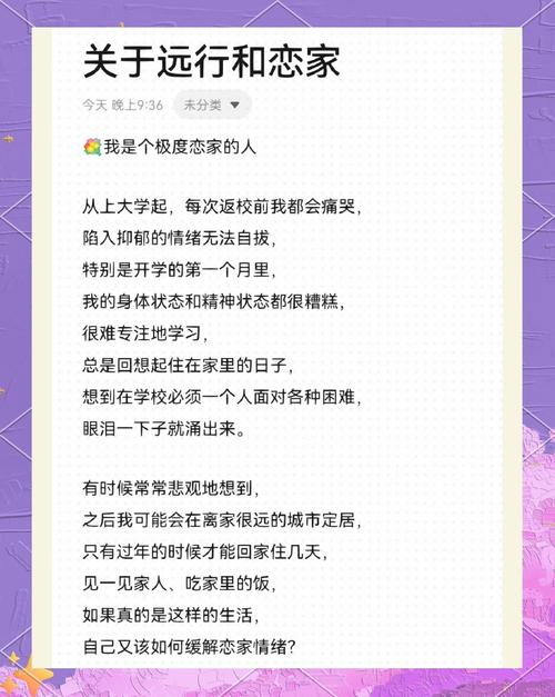 〖One〗、成年人排解恋家情愫的方法主要包括以下几点:分散注意力:沉浸在音乐、书籍或电子游戏中,暂时转移对家的思念。积极社交:与同事深度交流,参加老友聚会,找到归属感和慰藉。实际行动慰藉心灵:通过购买和使用家居小物,如三明治机,制作健康美食,感受家的温馨。提升生活品质,选取舒适的床上用品和香薰,营造家的氛围。