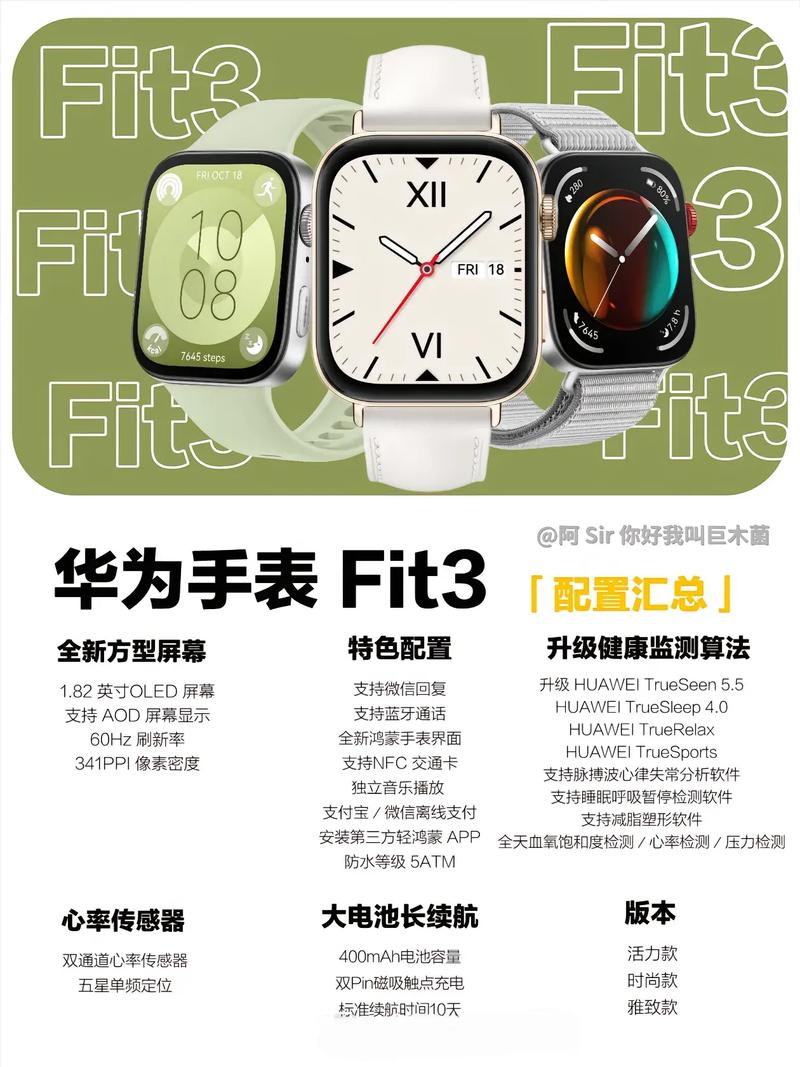 〖Three〗、Watch GT系列,主打运动健康,适合运动爱好者,费用较为亲民。 Watch Series系列,定位高端,功能全面,适合商务人士和高端用户。 Watch Fit系列,主打年轻时尚,费用适中,适合年轻人和学生。 Watch 3系列,定位旗舰,功能强大,适合科技爱好者。