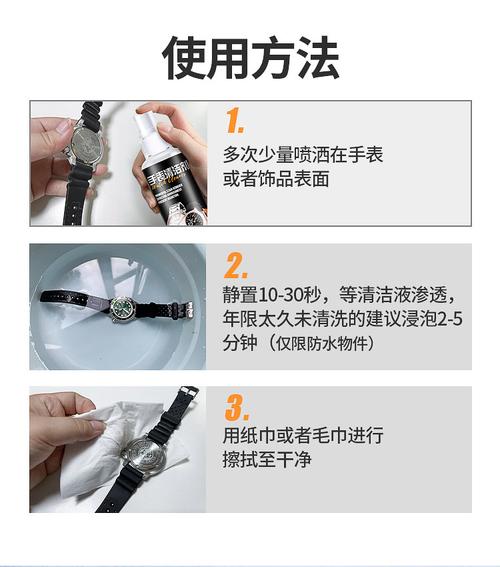 〖Two〗、使用温和的牙刷蘸取沐浴露或洗洁精,轻柔地擦拭手表带接缝处。之后,用清水冲洗干净,并使用干净的软布擦干,最后离约10厘米使用吹风机吹干。 将手表带浸泡在专用的珠宝清洁药水中,然后再次用清水冲洗干净。 前往手表售后服务中心购买专门的清洁布(如K金布)进行擦拭。