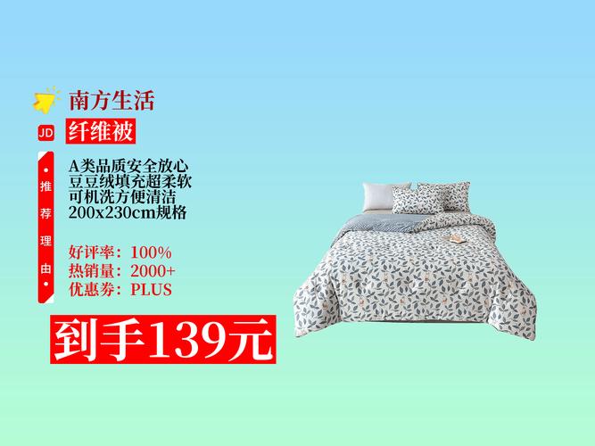 南方更适合羽绒被。以下是具体原因:适应南方阴冷潮湿环境:南方的冬天常常阴冷潮湿,羽绒被因其独特的纤维结构,具有出色的保暖性能,能够有效隔离外界的冷空气。同时,羽绒的表层含有油脂,具备天然的拒水性能,湿气无法渗透进被子里,适合南方潮湿的环境。保暖效果更佳:相较于大豆被,羽绒被在保暖效果上更胜一筹。