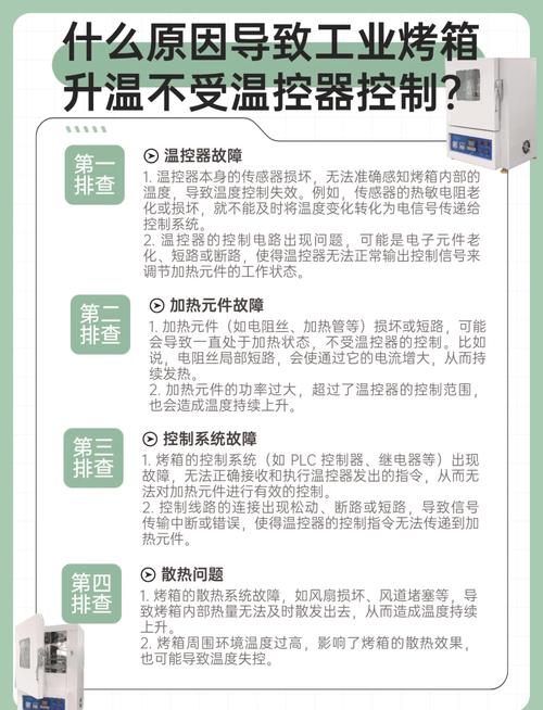 〖One〗、过载是造成工业烤箱跳闸的常见原因之一。当烤箱内加热元件功率过大或者连续工作时间过长时,会导致电流超过电路的最大承载能力,从而触发断路器跳闸以保护电路安全。这种情况下需要检查烤箱功率是否符合电路设计容量,如果超负荷运行需要适当调整或增加电源容量。短路是工业烤箱跳闸的另一个可能原因。