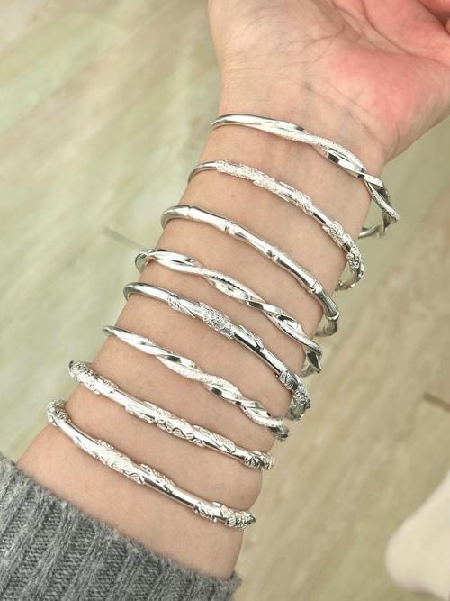 按克计价:2023年,纯银手镯的单价根据不同纯度和地区珠宝店的经营方式有所不同。例如,S999银(纯度999%)的费用可能在34元/克左右,S990银(纯度900%)可能在29元/克左右,而S925银(纯度950%)则可能在94元/克左右。