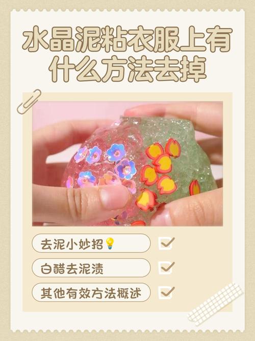〖Three〗、如果水晶泥弄到衣服上,可以尝试以下几种方法清除:冷冻法:步骤:首先在被污染的衣服部位涂上洗衣液,然后用塑料袋将衣服包裹起来,放入冰箱急冻层冷冻半小时。之后取出衣服,稍微一甩,水晶泥通常就会脱落。浸泡法:步骤:将衣服浸泡在洗衣液中数小时,然后手洗尝试去除水晶泥。