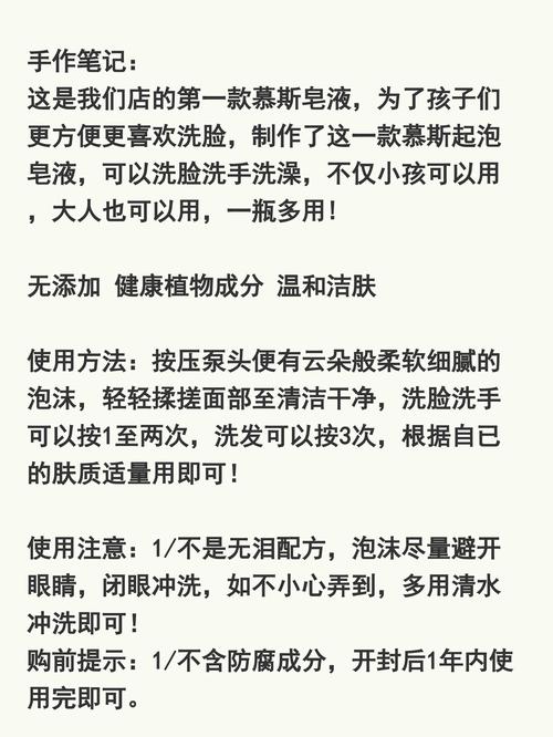 〖Two〗、搓出泡沫:将手和洁面皂打湿后,慢慢揉搓至起泡。建议使用起泡网来弄出泡沫,因为洁面皂的主要成分都在泡沫里。直接将洁面皂涂在脸上是错误的做法,因为这样会影响清洁效果。按摩清洁:将泡沫均匀涂抹在脸上,用按摩的方式在脸颊、额头、眼睛四周及下巴进行清洁。