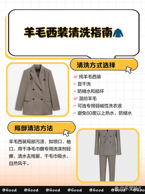 羊毛西服不能水洗,只能干洗。以下是关于羊毛西服清洗的详细解 不能水洗的原因:材质特性:羊毛西服的材质属于动物纤维,水洗过程中纤维容易粘在一起,导致西服变形缩水。影响美观:水洗后的羊毛西服容易变形,且羊毛纤维吸水后容易变得不耐脏,影响整体美观。