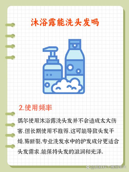 偶尔用沐浴露洗了头发不要紧,但不建议长期使用。偶尔使用无大碍:沐浴露主要用于清洁身体皮肤,含有保湿和清洁成分,偶尔用来清洁头发和头皮是可以的,不会对头发造成严重的即时伤害。