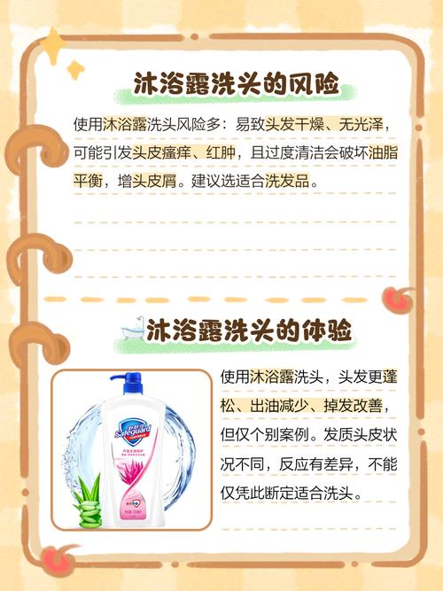 使用沐浴露洗头可能带来多种问题。首先,沐浴露中的成分可能对头皮产生刺激,导致头皮发痒或红肿。其次,沐浴露中的化学成分会对头发造成损害,使头发失去光泽,甚至导致头发断裂和脱落。此外,沐浴露还可能刺激眼睛,导致眼睛疼痛、流泪和红肿。一旦发现自己用沐浴露洗了头,不必过于惊慌。