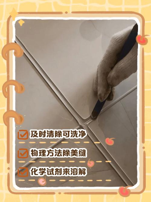 〖Two〗、搓洗:在剩余的美缝剂痕迹上涂抹洗洁精,并用手或刷子轻轻搓洗,直至美缝剂被彻底清洗干净。使用香蕉水:购买香蕉水:如果洗洁精无法完全去除美缝剂,可以前往超市或五金店购买含有乙酸乙酯的香蕉水。涂抹并去除:将香蕉水涂抹在美缝剂痕迹上,轻轻揉搓或擦拭,香蕉水能有效溶解并去除美缝剂。