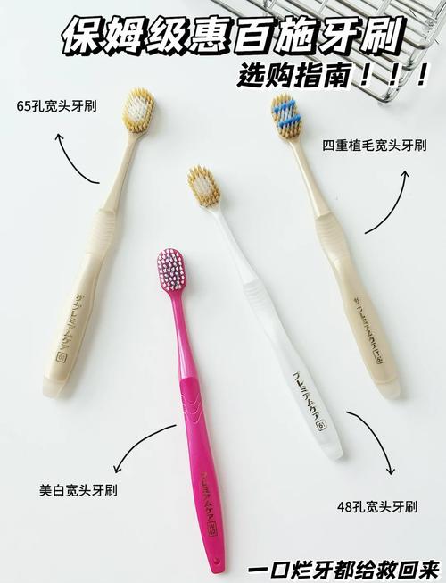 〖Four〗、选取惠百施牙刷型号时,可以遵循以下步骤:观察包装上的数字:惠百施牙刷的型号主要通过包装上的数字来表示。其中,个位数代表刷毛的质地,而十位数代表刷毛的列数。