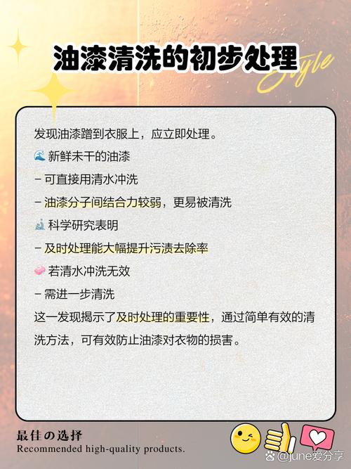当油漆不慎沾到衣服上并已干燥时,可以采取以下几种方法尝试去除: 使用清凉油或猪油:首先,区分油漆的类型。如果是普通水溶性油漆,可以直接用水清洗。对于非水溶性油漆,可以涂抹驱蚊用的清凉油在油漆渍上,隔几分钟后,用棉花球沿着衣料纹理擦拭,然后用清水洗净。