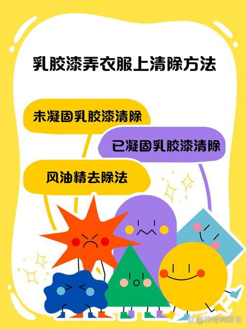 去除衣服上的乳胶漆,可以采取以下几种方法:及时水洗 如果乳胶漆是水溶性的,或者属于家用内墙涂料,一旦沾上衣物,应立即用水冲洗。乳胶漆在未干固前,具有较好的水溶性,及时冲洗可以有效去除。风油精揉搓 将少许风油精涂抹在乳胶漆污点上,然后用双手揉搓数次。