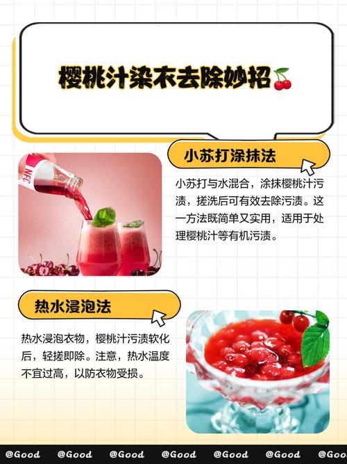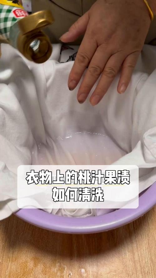 〖Three〗、当桃子水滴在衣服上时,可以采取以下几种方法进行清洗:使用草酸溶液:原理:桃汁含有高价铁,草酸溶液能有效去除。步骤:将草酸溶液涂抹在桃汁污渍处,浸泡数分钟后用水洗净。热水清洗与洗洁剂:步骤:先用热水清洗污渍处,或用湿布、湿纸轻拍污处,然后使用洗洁剂清洗。若污渍顽固,可用食盐水洗。