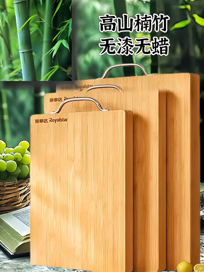 竹菜板材质好家用。合格的竹菜板应是天然植物制成,材质较为结实且不容易开裂或掉渣,污垢不易被塞在缝隙里,比较干净,清洁起来也更方便。因竹菜板容易风干,不容易发霉,有异味,是很好的选取。美中不足的是,竹菜板由于厚度不够,多为拼接而成,使用时经不起重击,所以比较好用来切菜或水果,剁肉则不太适合。