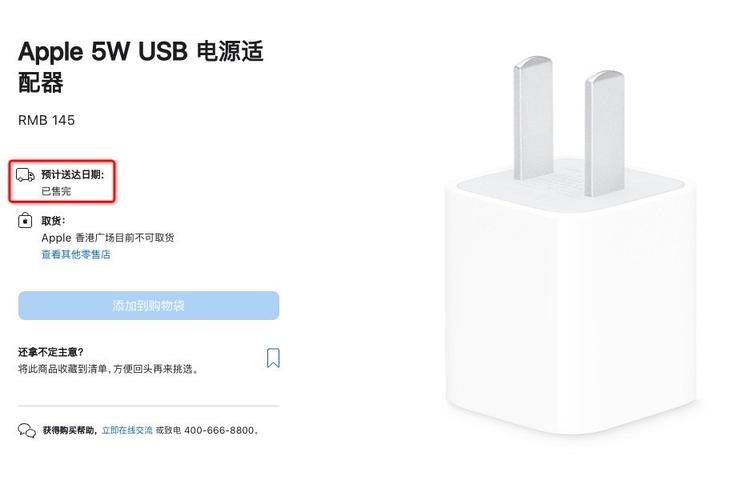 苹果五福一安充电器全面售罄怎么回事 苹果官方网站一款“经典”充电头有望迎来生命周期终结,售价145元的苹果5W USB电源适配器在苹果官方网站显示“售罄”。 此外,苹果在中国大陆的 Apple Store 零售店显示“不可取货”。据苹果官方网站介绍,这款电源适配器的设计非常紧凑,可以在家中、办公室和旅途中快速方便地充电。