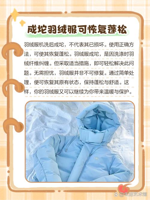 解决羽绒棉衣服洗涤后成坨的问题,可以采取以下措施:首先,在衣服洗涤完成后,应尽量用手挤出多余的水分,多次重复此过程后再进行晾晒;其次,待衣服完全干燥后,使用衣架反复拍打衣服,以便羽绒能够重新蓬松起来,恢复原有的形状。