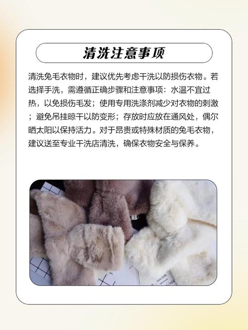〖One〗、使用中性洗涤剂或专门的洗涤剂。准备一个事先缝好的布袋,用于浸泡和洗涤兔毛衣物,以防止衣物变形或毛发打结。浸泡与洗涤:将兔毛衣物放入布袋中,浸泡在40℃左右的温水中。如果使用溶剂汽油干洗,则无需浸泡,直接用溶剂汽油轻轻刷洗污渍处。轻轻揉搓挤压衣物,避免使用搓板或用力拧绞,以免损坏衣物纤维和毛发。