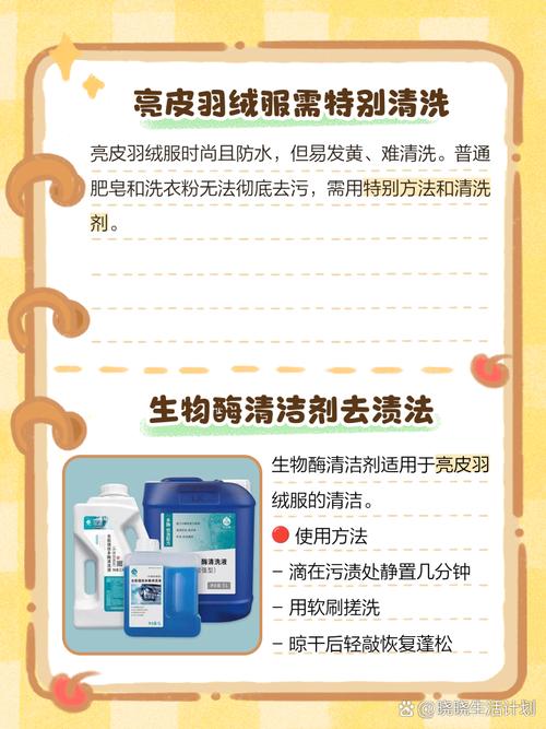 〖Two〗、清洗亮皮羽绒服,你可以按照以下步骤来操作哦:先湿毛巾轻擦:拿一条干净的毛巾,沾点清水,然后轻轻地擦拭羽绒服上脏的地方,就像给羽绒服做个初步的面部清洁。洗衣液稀释后擦拭:取少量的洗衣液,加入适量的温水稀释一下。再把毛巾放进去浸湿,然后拿出来继续擦拭刚才脏的地方。