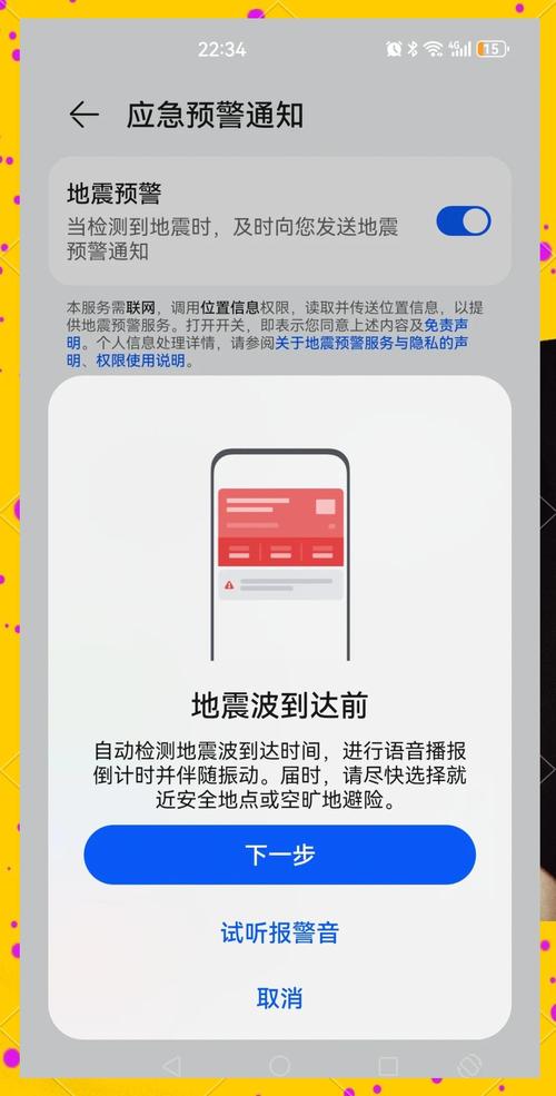 设置步骤:在手机中找到“手机管家”应用,进入“家人关怀”选项,然后选取“地震预警”。功能说明:开启后,手机将在检测到地震信号时发出预警,帮助用户及时避险。荣耀:设置步骤:与华为类似,进入“设置”,选取“安全”,然后找到“应急预警通知”,在此开启“地震预警”。