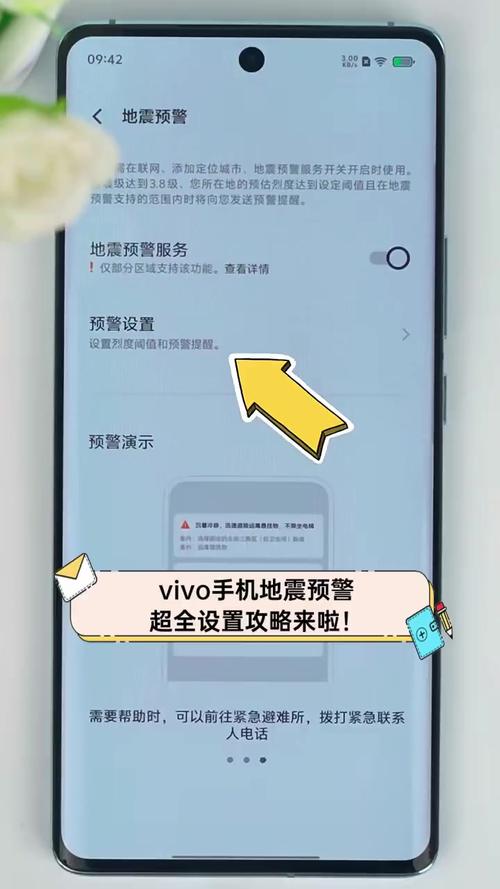 〖Three〗、在vivo手机上设置地震预警功能需要按照一定的步骤进行。首先,在手机桌面上找到并点击“设置”图标,进入“设置”菜单。接着,在该菜单中找到并点击“地震预警”选项。点击后,将“地震预警”功能的开关按钮向右滑动,直到显示为蓝色并显示“开启”字样,以启动地震预警功能。