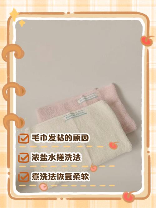 〖One〗、方法一:白醋清洗,往温水中加入适量白醋,将发粘毛巾浸泡其中半小时左右,然后用力搓洗,最后用清水冲洗干净,白醋能有效去除毛巾上的粘性物质。方法二:食盐清洗,在水中加入食盐,搅拌均匀后把毛巾放进去煮10 - 15分钟,接着正常清洗,食盐有杀菌清洁的作用,可让毛巾恢复清爽。