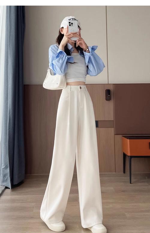 〖Four〗、小白裤夏日穿裤子你肯定会纠结颜色怎么选,那我首先要推荐你可以尝试一下白色的裤子,这种白色很清爽,也很百搭,夏日穿一定是很容易出彩的,尤其是白色的阔腿裤,穿在身上也很有气质,这些时髦的色彩穿在身上自然而然也能够帮助我们去修饰身材,相比裙装看上去更清新。