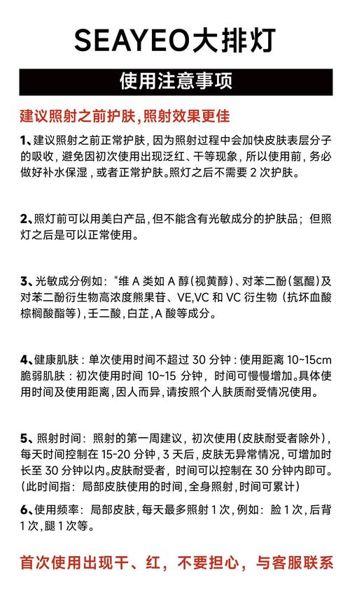 〖Five〗、对于敏感肌肤来说,使用大排灯时需格外小心。由于其LED照明可能引发皮肤敏感,敏感皮肤不建议直接在治疗后敷面膜,以免加重皮肤负担。此外,脸部有伤口或孕妇在怀孕期间,由于身体激素变化,应避免使用大排灯美容仪,以免影响皮肤恢复和胎儿健康。
